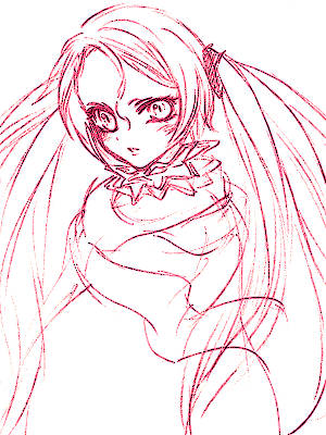 ニッチのラフ画。思ったより大人びちゃった感じーで描き直しました。
