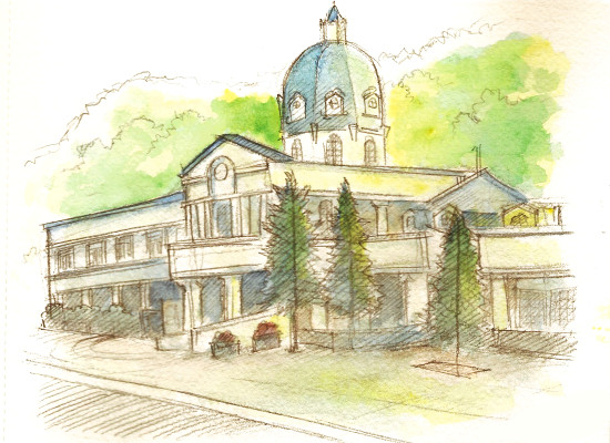 下の絵は、最近母と二人旅をした時に描いたものです。(道の駅!)